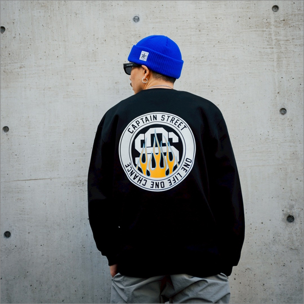 - > 【送料無料】CAPTAIN STREET Flame eighty クルーネックスウェット BLACK キャプテンストリート