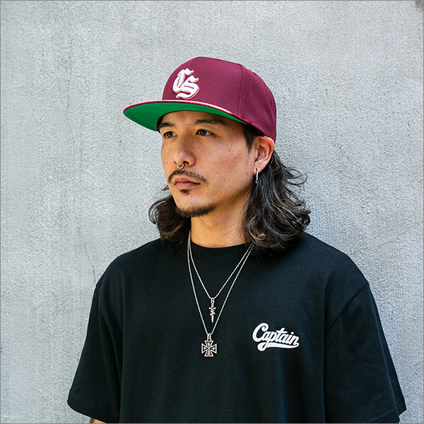 - > CAPTAIN STREET Old CS スナップバックキャップ BURGUNDY キャプテンストリート