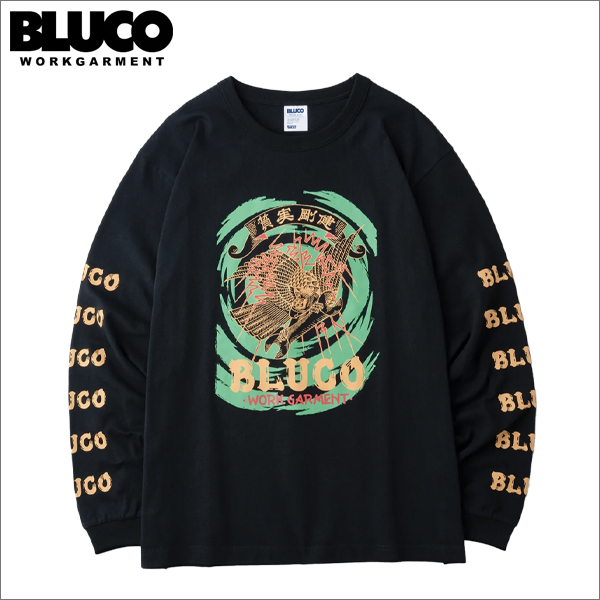 BLUCO ブルコ HEAVY DRY COTTON PRINT L/S TEE -Artwork by 遊鷹- BLACK [bc250822001]