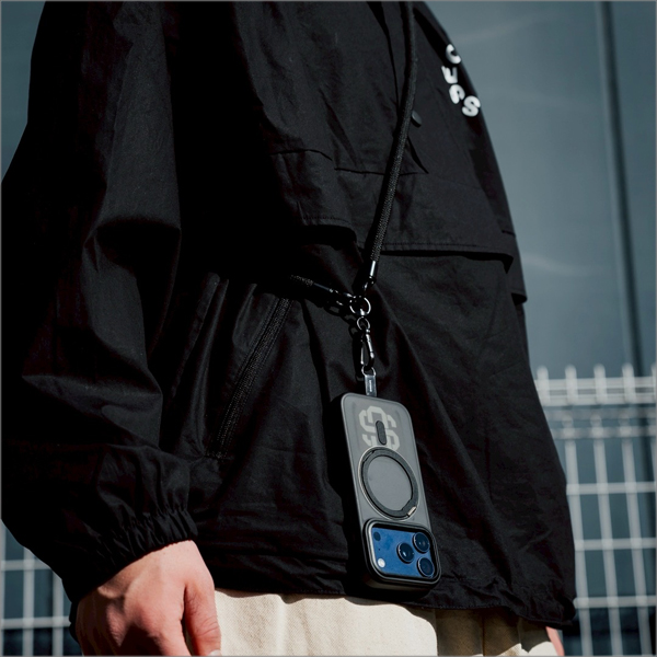 ストラップを装着することによりスマホを首や肩にかけて使うことができます