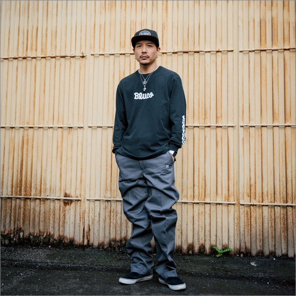 特徴のあるフロッキープリントが、デザインとの相性が良く、BLUCOらしいプリントTシャツです。