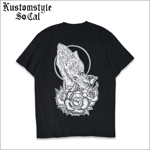 KustomStyle カスタムスタイル SKULL ROSE PRAYING HANDS Tシャツ