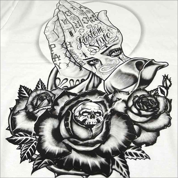 KustomStyle カスタムスタイル SKULL ROSE PRAYING HANDS Tシャツ