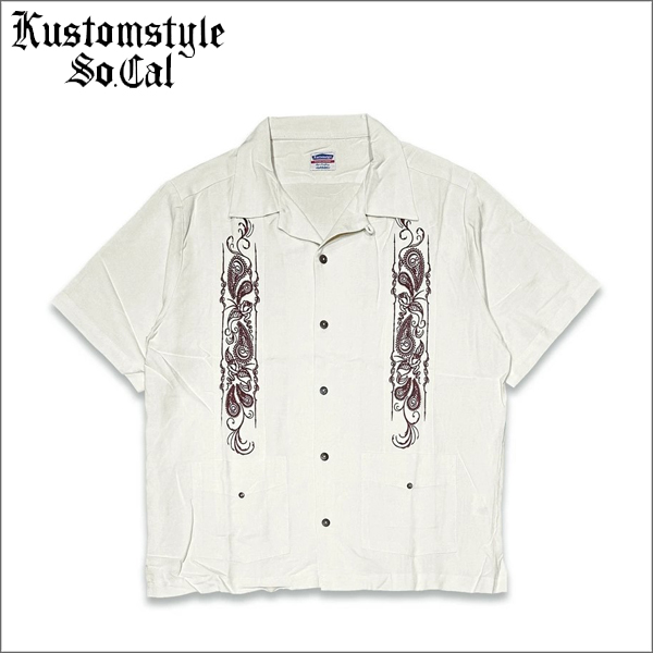【送料無料】KustomStyle カスタムスタイル LONGROOF S/S キューバシャツ OFF WHITE