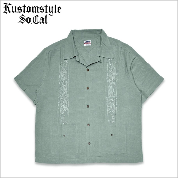 【送料無料】KustomStyle カスタムスタイル LONGROOF S/S キューバシャツ GREEN