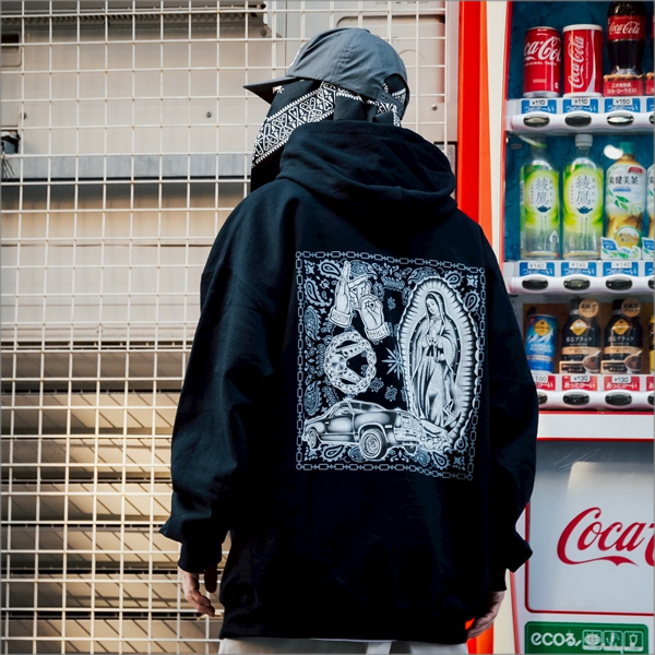 左胸,バックにプリントされた裏起毛のパーカー